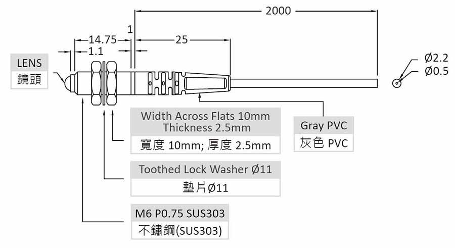 PTS2-320-T05 內(nèi)含鏡頭光纖