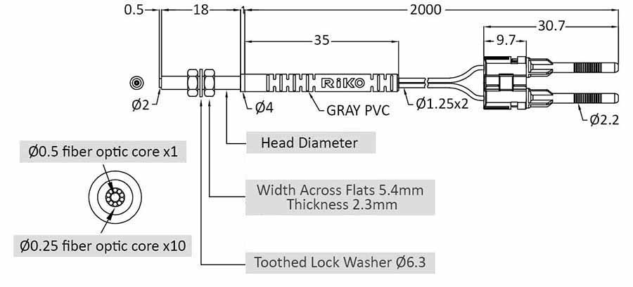 | Model | Reflective M3 Anti-Bending Fiber Optics Sensor |