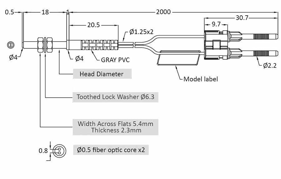 | Model | Reflective M3 PRD-320-B1 Anti-Bending Fiber Optics Sensor |