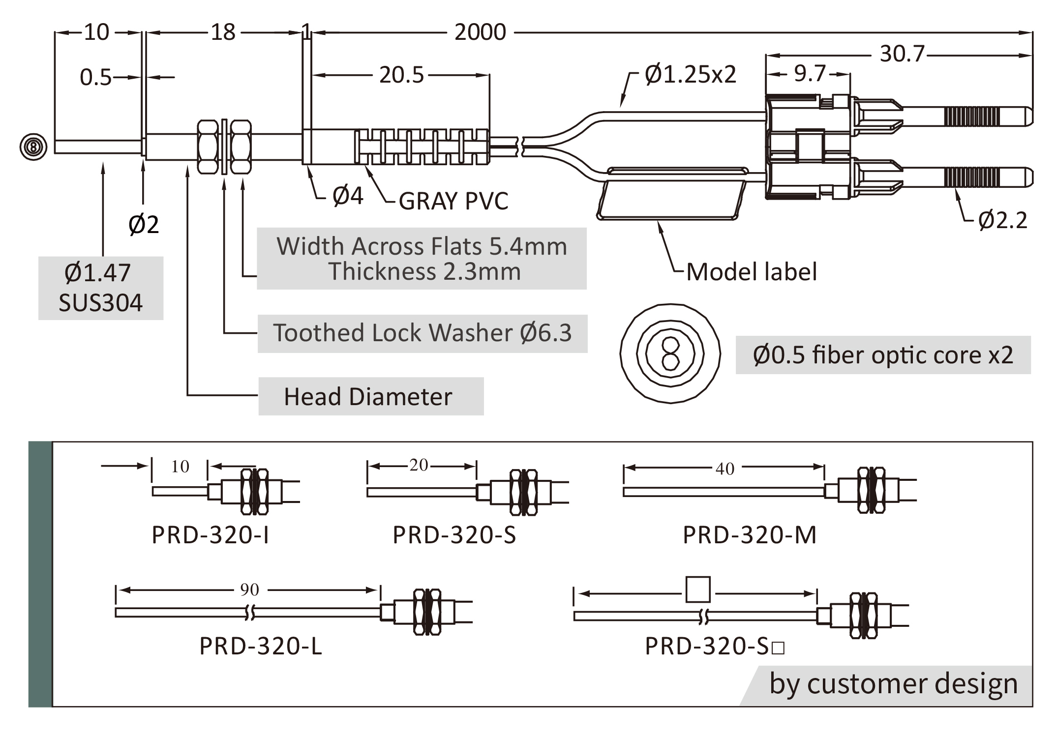 | Model | Reflective M3 Anti-Bending Fiber Optics Sensor |
