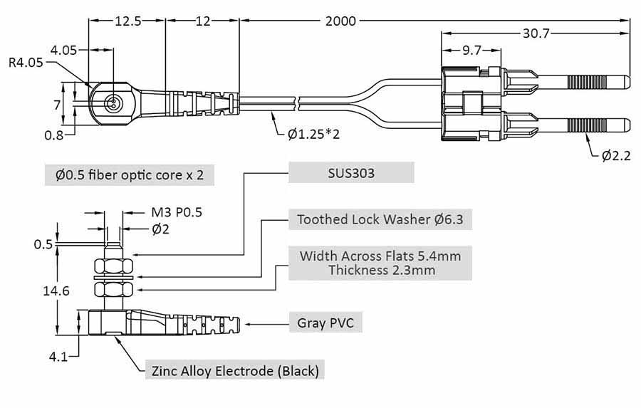 | Model | 90° M3 Anti-Bending Fiber Optics Sensor |