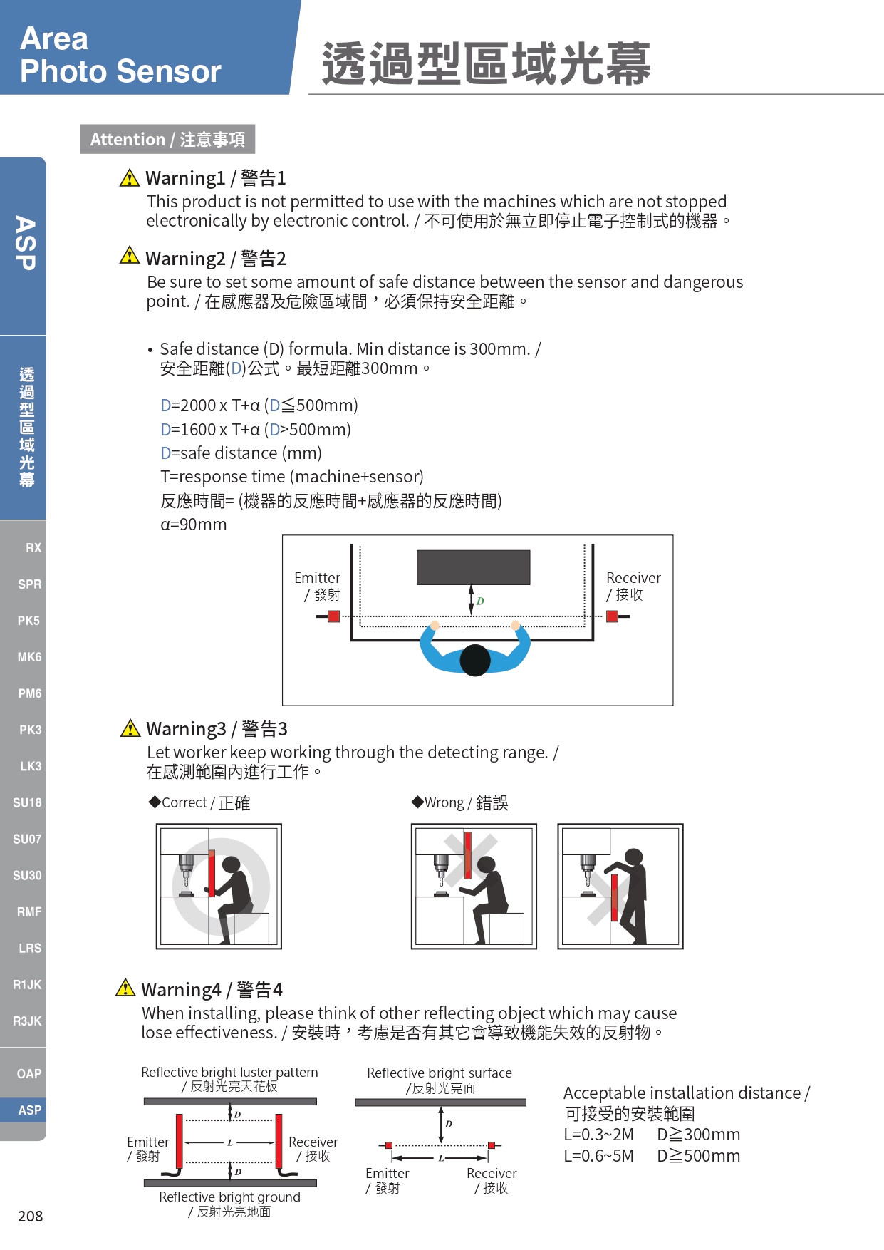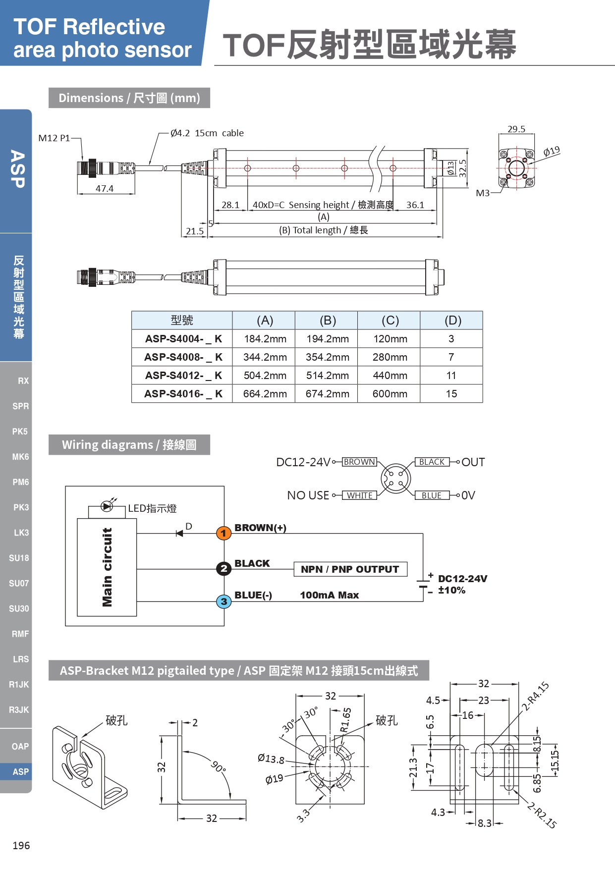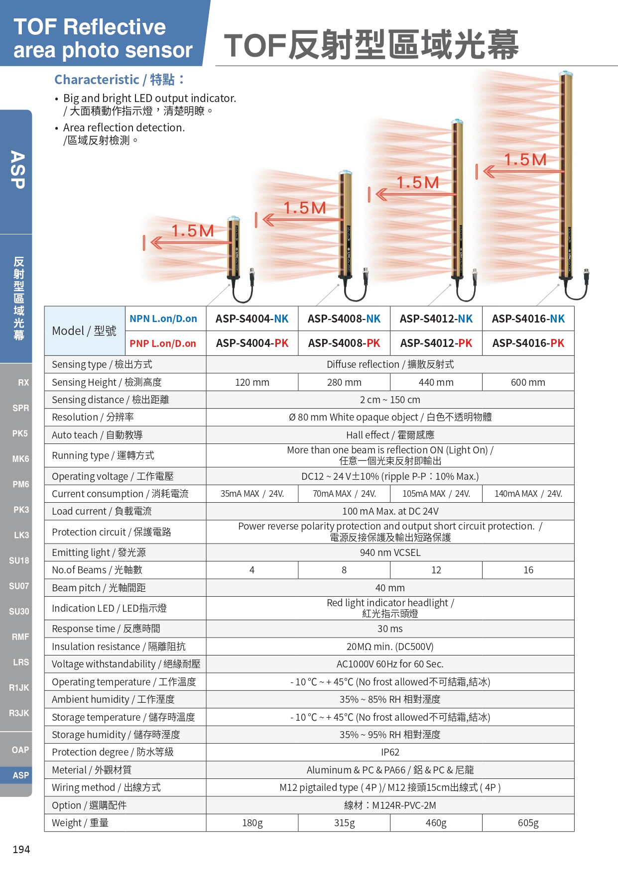 ASP-S4012-PK 區(qū)域型光幕、光柵