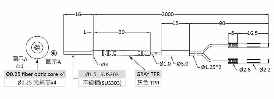 反射型 ?1.5 耐彎抗拉光纖