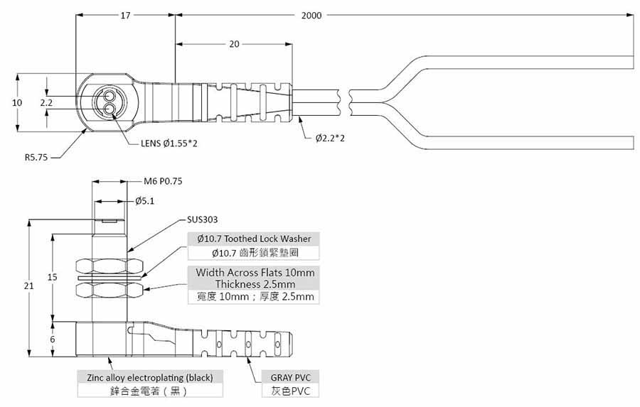 PTS2-320-T05 內(nèi)含鏡頭光纖