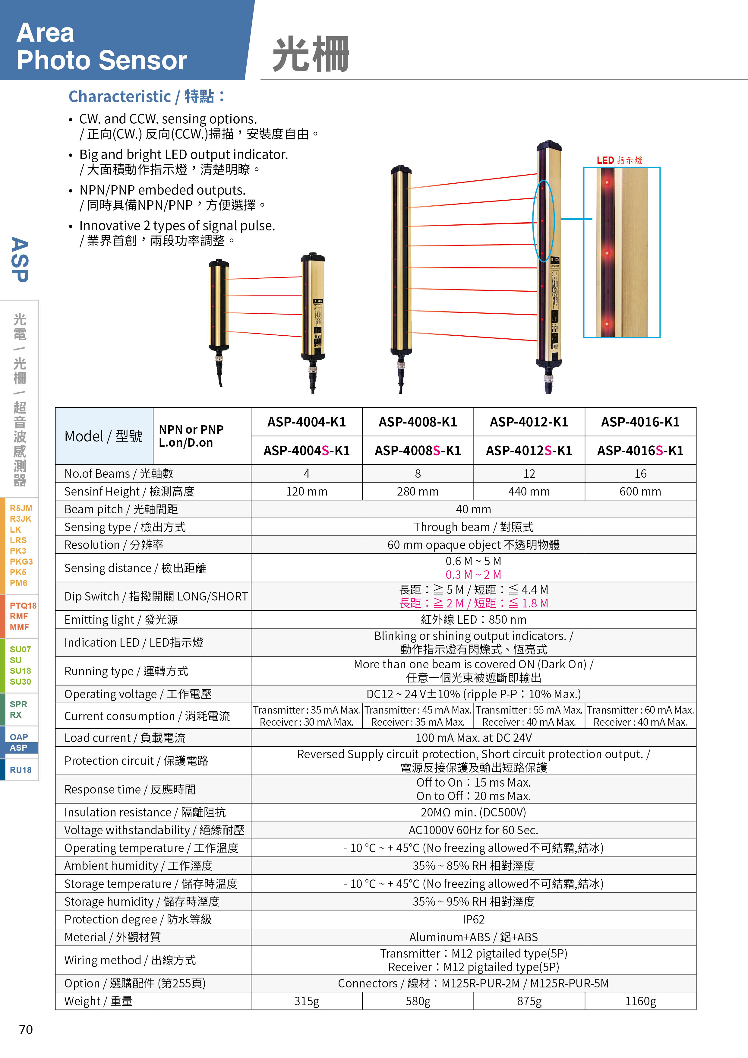 | 運行類型 | More than one beam is covered ON (Dark On) / 任意一個光束被遮斷即輸出 |