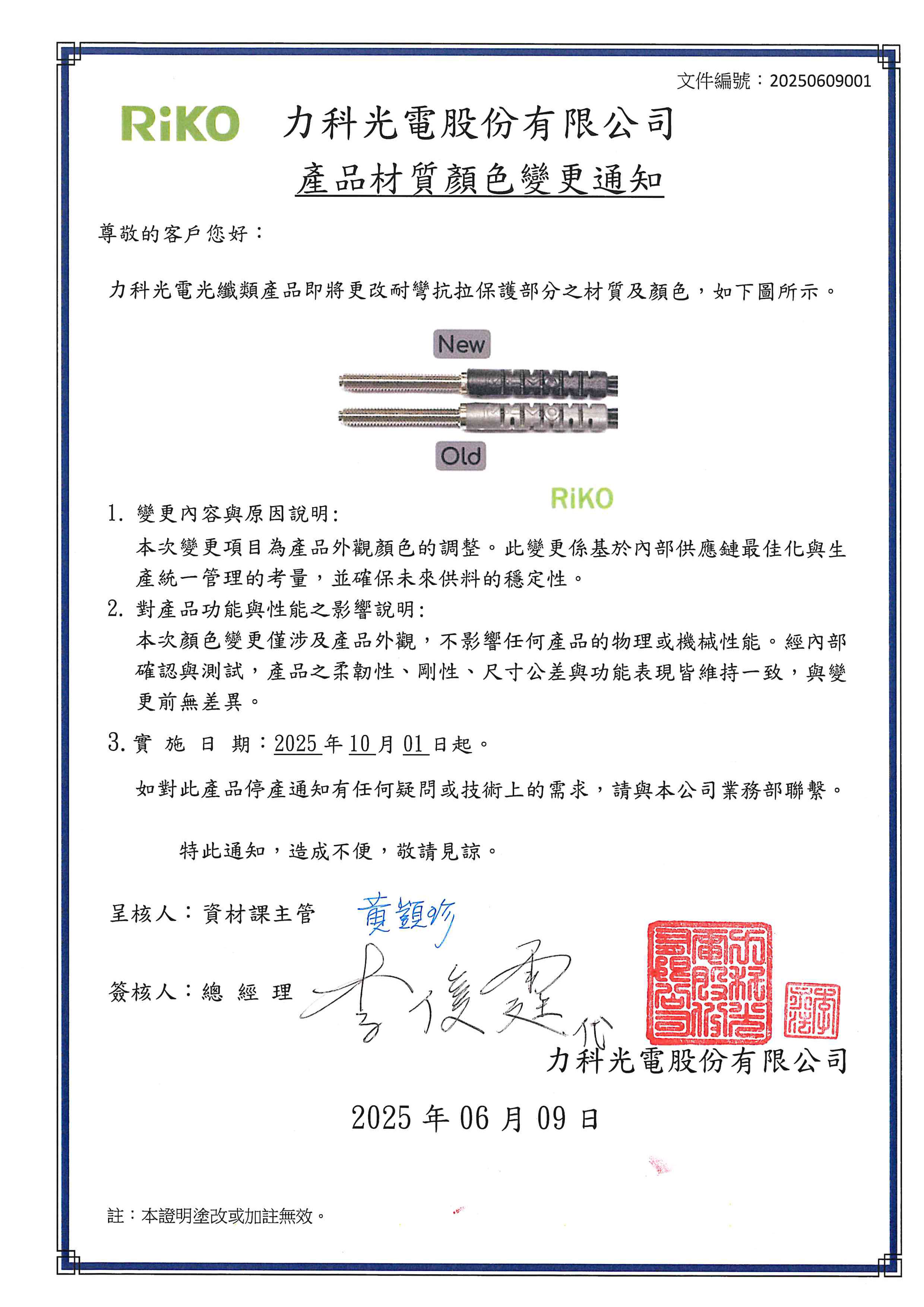 重要聲明:RiKO 產(chǎn)品顏色變色通知