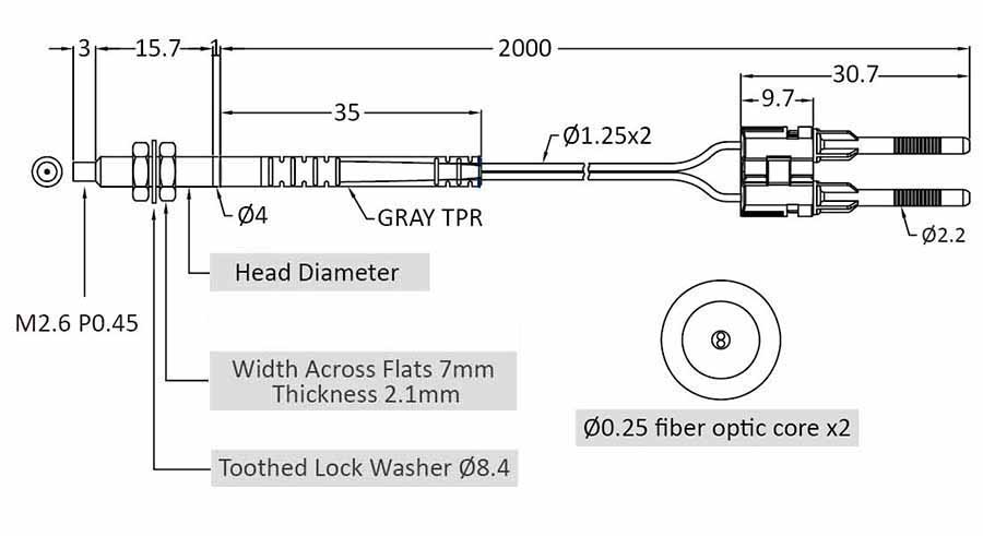 | Model | Reflective M4 Anti-Bending Fiber Optics Sensor |