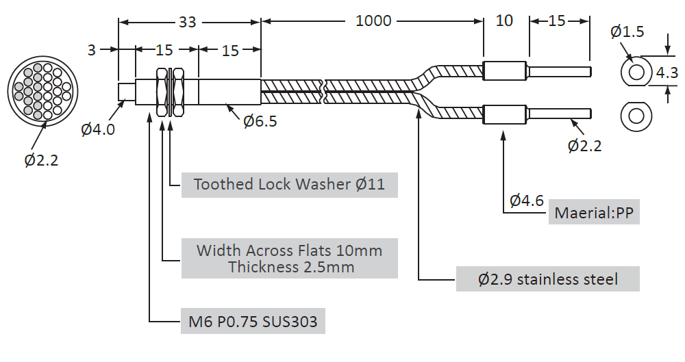 | individual fiber diameter | (53μm x 800 code ) x 2 |