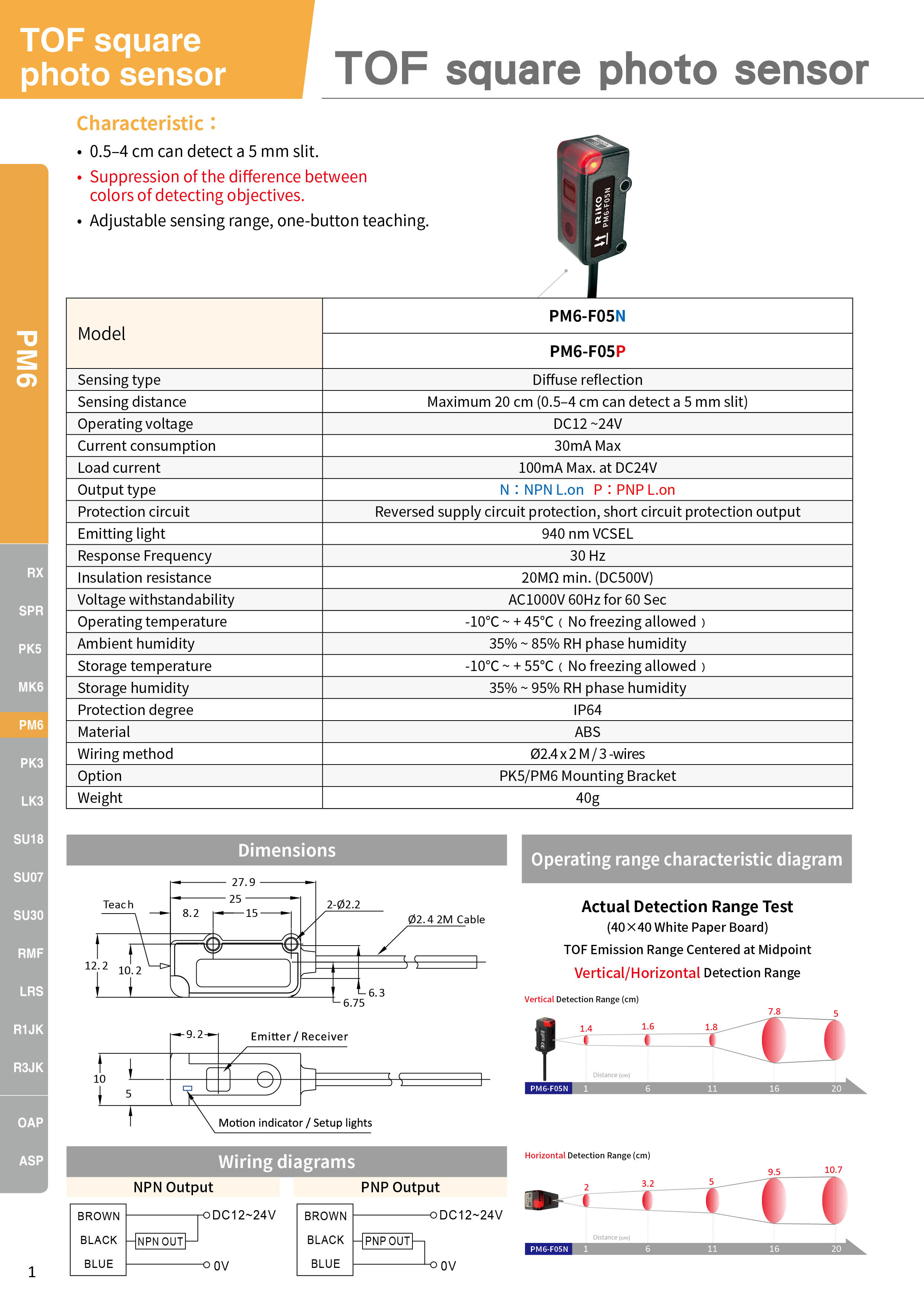 | Detection distance | 最遠(yuǎn) 10 cm ( 0.5 ~ 5cm 內(nèi)可維持 2.5° 窄角 ) |