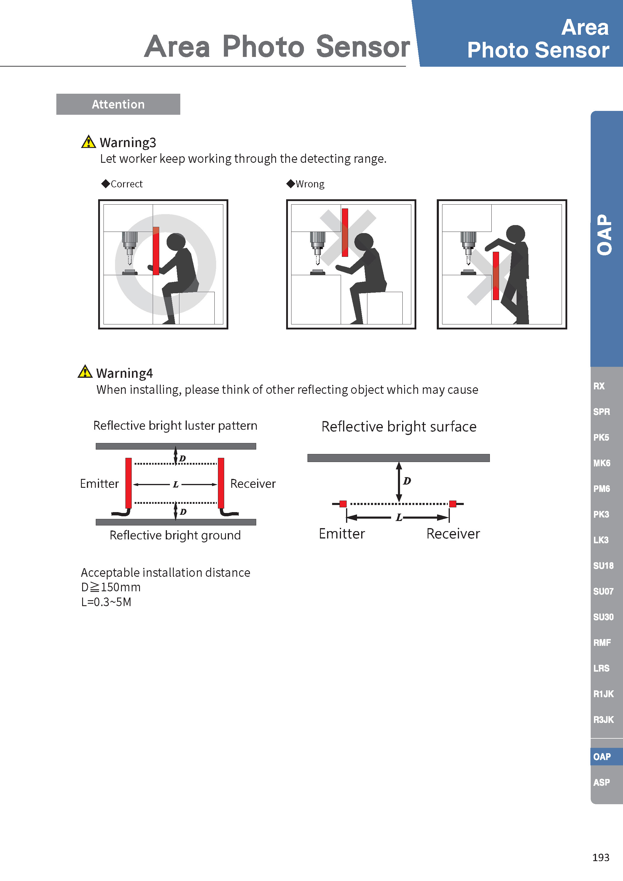 | 表示LED | 在正常通電情況下,LED燈在發(fā)射端光軸被阻隔時,紅+綠燈會全亮。 如果恢復(fù)正常,即發(fā)射端光軸不被阻隔,LED亮綠燈。 |
