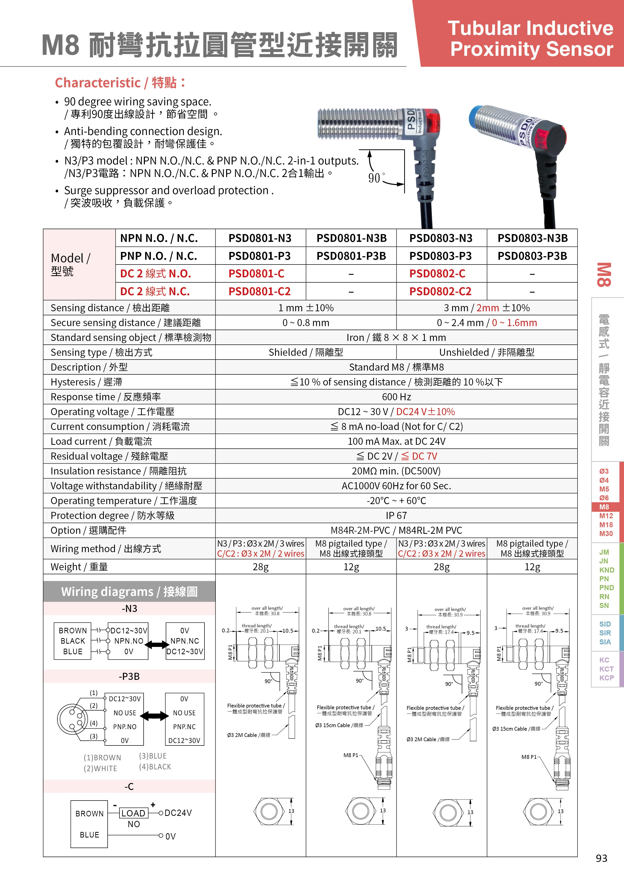 | 標準検知物體 | Iron 8 x 8 x 1 mm |