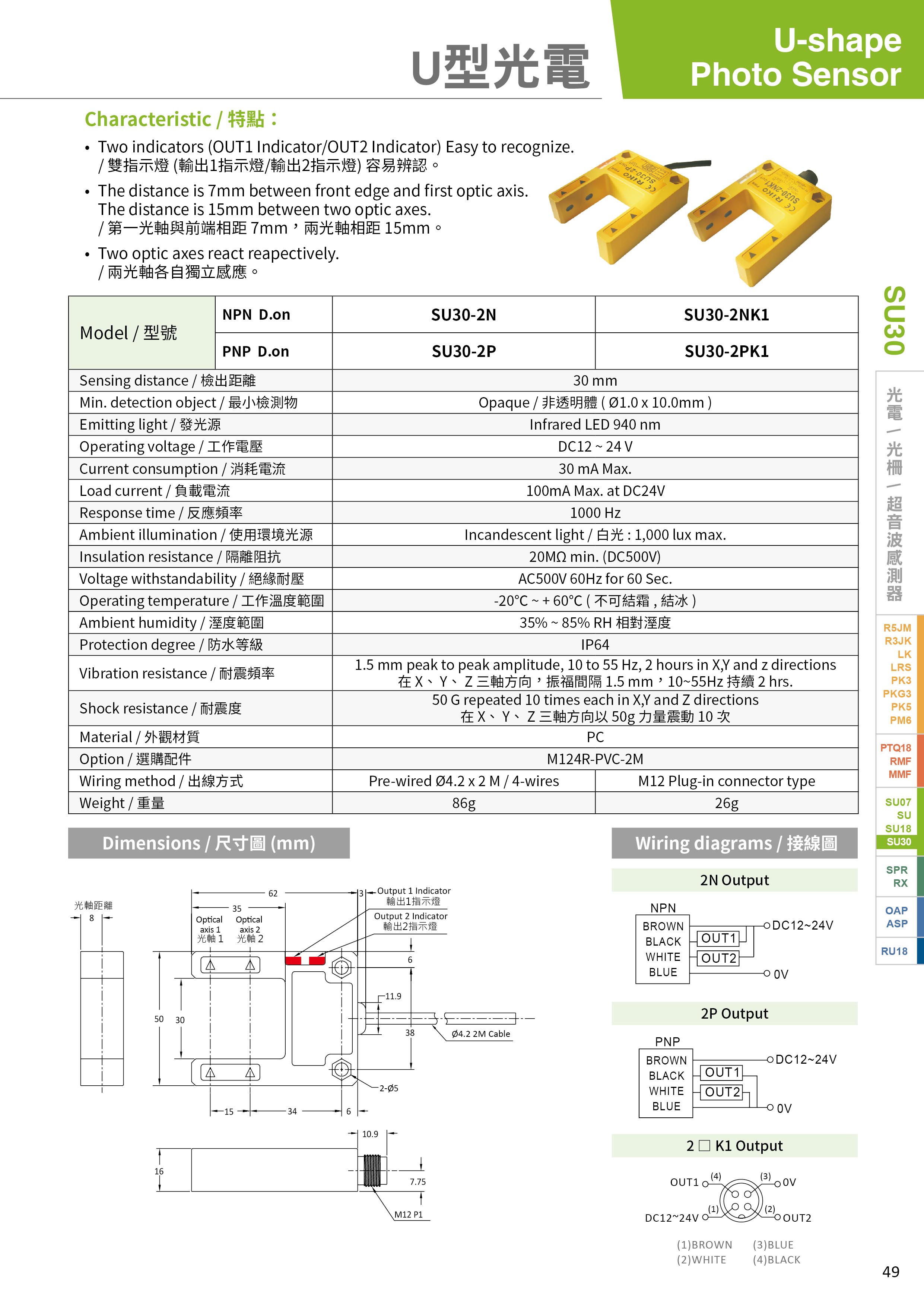 ? 雙指示燈( 輸出1 指示燈/ 輸出2 指示燈)容易辦認(rèn)。
