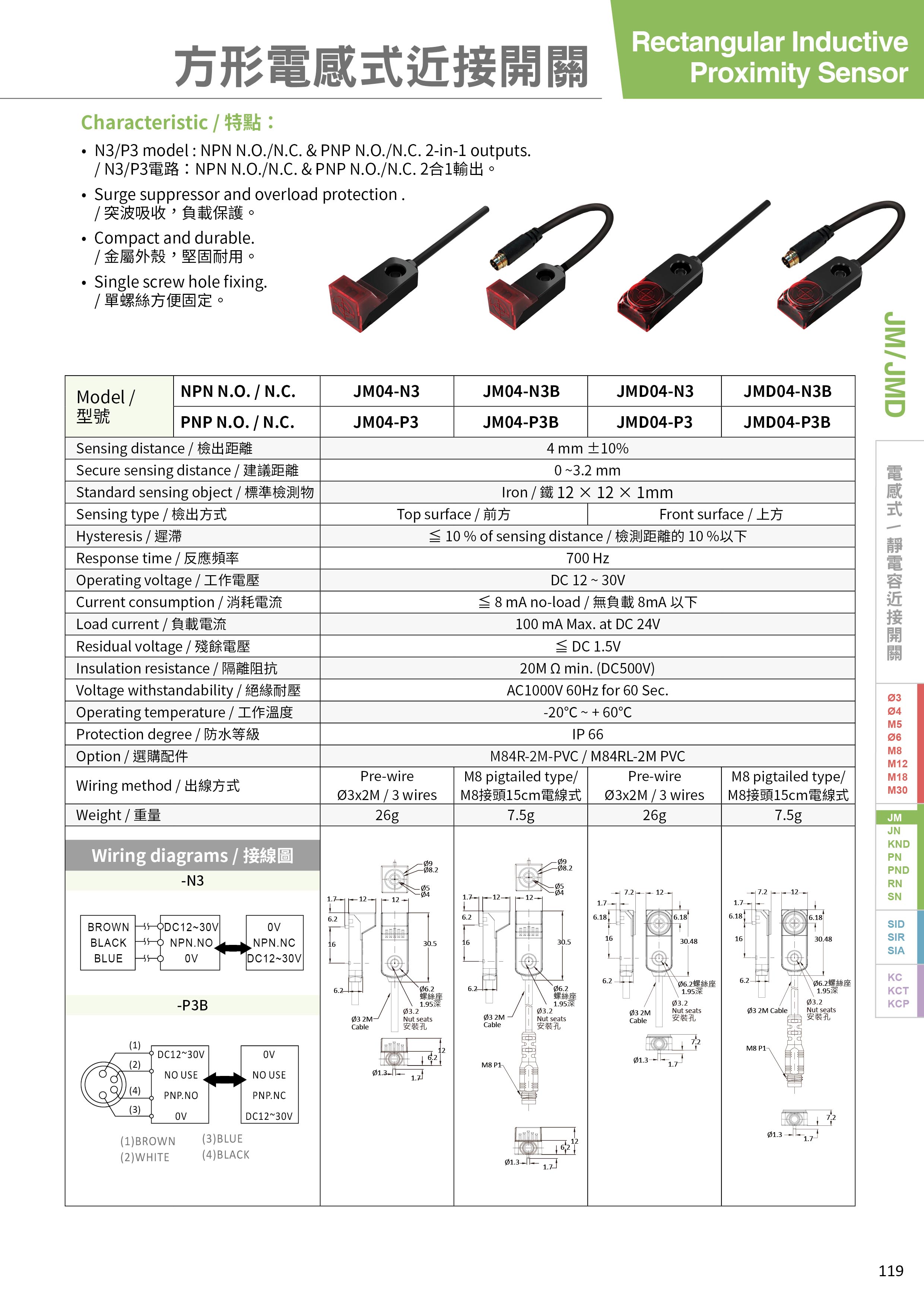 JM - N3/P3 方形電感式金屬外殼近接開關(guān)