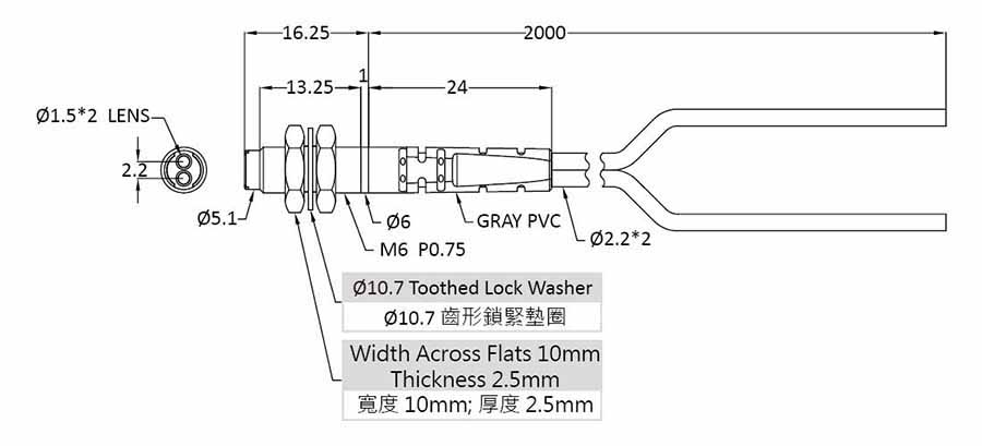 PRS-620-B5內含鏡頭光纖感測器,出光角度12度,對於相鄰比較近的金屬柱可以穩(wěn)定地做到位檢測。